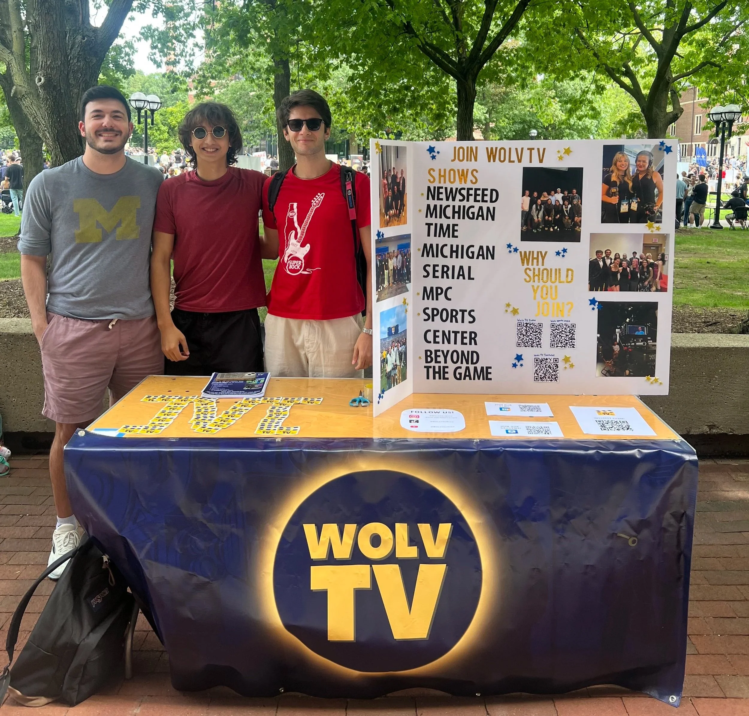 WOLV-TV was founded in 1994 by three students: Danny Schwab, Scott Doyne, and Jeff Holzhausen, to broadcast Michigan Ice Hockey games. Throughout the past 30 years, WOLV-TV has evolved into an television organization that specializes in producing a variety of shows that span across all our branches, including News, Sports, and Entertainment. Sponsored by the University of Michigan’s Department of Film, Television, and Media (FTVM), we are located in North Quad on central campus where we spend the majority of our time filming in Studio A.